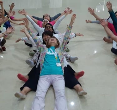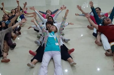 Laughter yoga combines playful exercises, breathing, movement, and spontaneity. It’s not about performing, it’s about connecting with yourself and others.