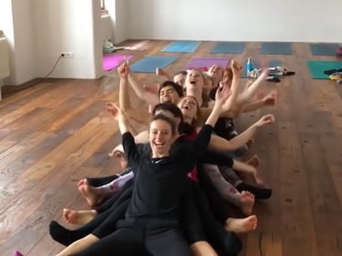 I lead laughter yoga as events in yoga studios, for team buildings, social gatherings, or any occasion where you simply want to bring some healthy joy, open up, and remember how precious that childlike playfulness still living inside us really is.