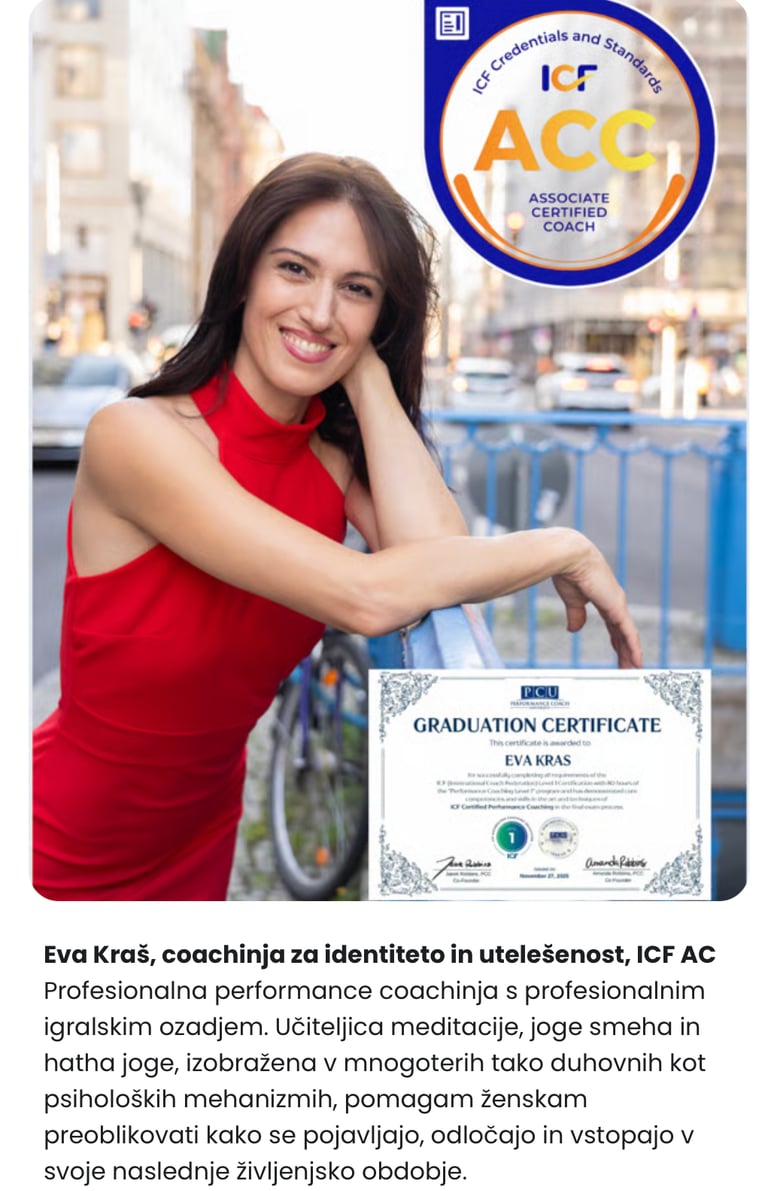 Zahvaljujoč njenemu coachingu zdaj sprejemam odločitve z večjim zavedanjem sebe, zaupam svoji poti in se počutim opolnomočeno, da živim polno – vsak dan znova.