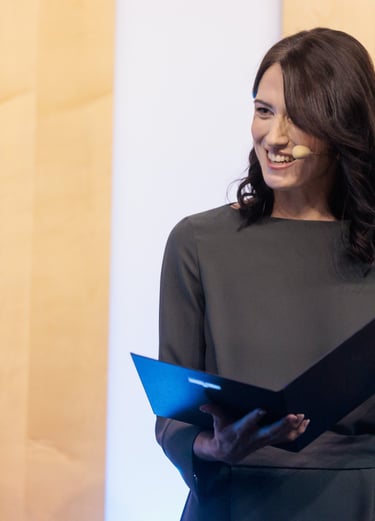 Kot profesionalna igralka se na odru počutim domače. Občinstva ne le nagovorim, ampak se z njim tudi srčno povežem in držim prostor, ki ustvarja ritem, toplino in profesionalnost dogodka.